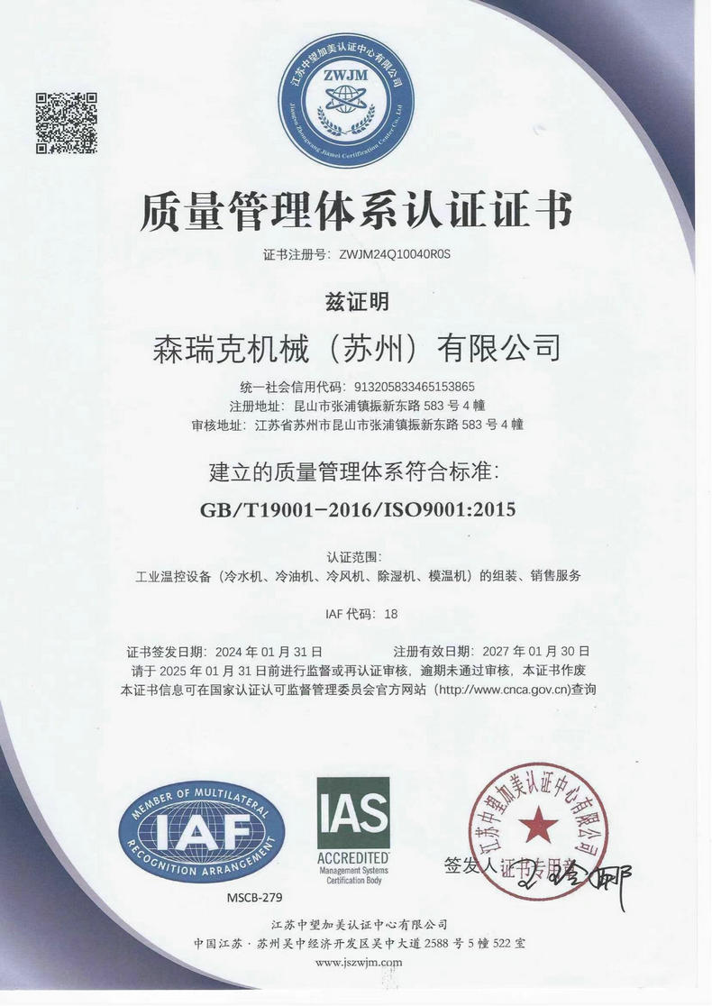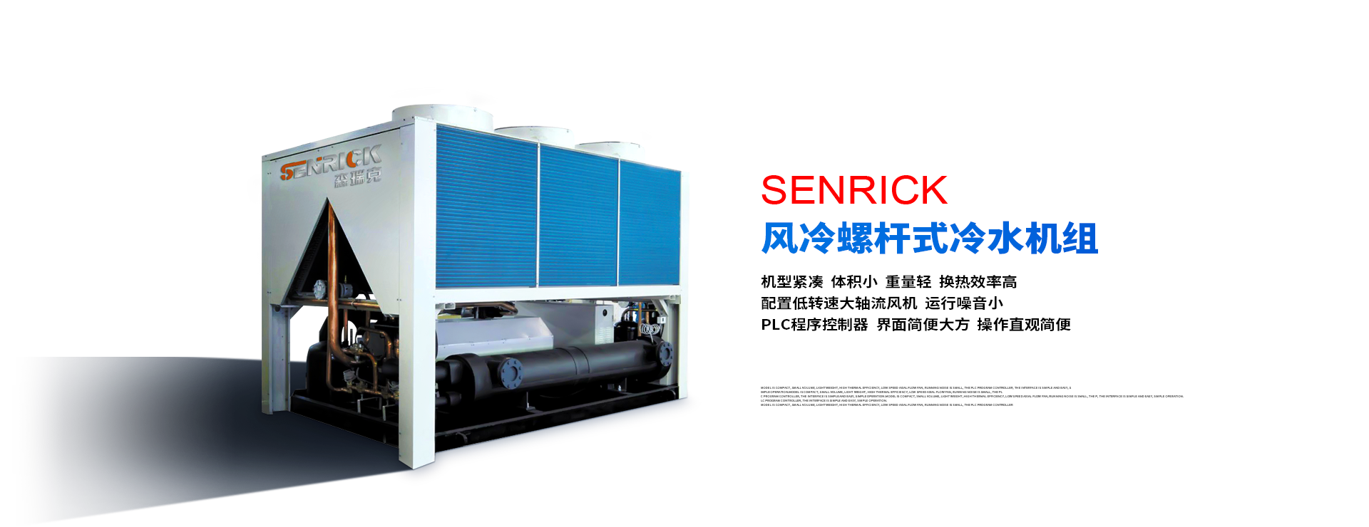 森瑞克機械(蘇州)有限公司(簡稱:SENRICK)是一家中外合作性企業(yè),引進技術(shù),專注于工業(yè)制冷設(shè)備,工業(yè)溫控設(shè)備,非標(biāo)制冷設(shè)備,集激光,化工,真空設(shè)備輔機等集研發(fā)、生產(chǎn)、銷售、服務(wù)于一體的的現(xiàn)代化科技企業(yè)。公司擁有完善的制造設(shè)備,先進的檢測系統(tǒng),獨立的加工、生產(chǎn)工藝,一支開拓創(chuàng)新專業(yè)有素的技術(shù)人才團隊,以及全面的質(zhì)量控制體系,為產(chǎn)品質(zhì)量的不斷優(yōu)化提供了強大的保障,以確保滿足不同市場的各種需求。經(jīng)過多年的努力企業(yè)相繼研發(fā)生產(chǎn)出了工業(yè)冷水機,工業(yè)冷風(fēng)機,工業(yè)冷油機,工業(yè)機,低溫冷水機,低溫冷風(fēng)機,低溫冷油機,螺桿式冷水機...